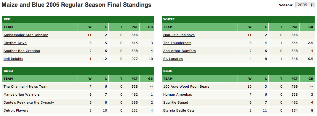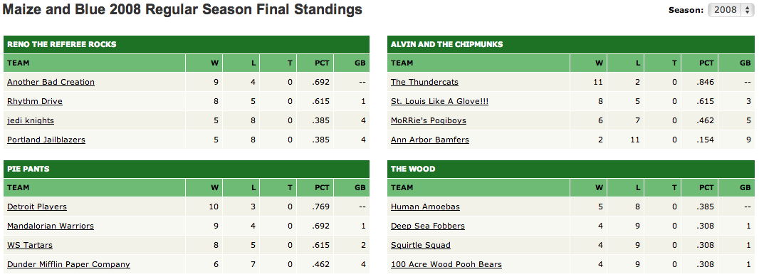 - Detroit Players (6-5-2) - Wins tiebreak vs Pooh Bears via H2H