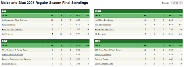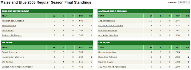 - Jedi Knights (8-5) - The Knights Who Say Ni Division Champions.