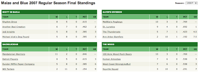 - Fockers (10-3) - The Wood Division Champions. Next best overall record.